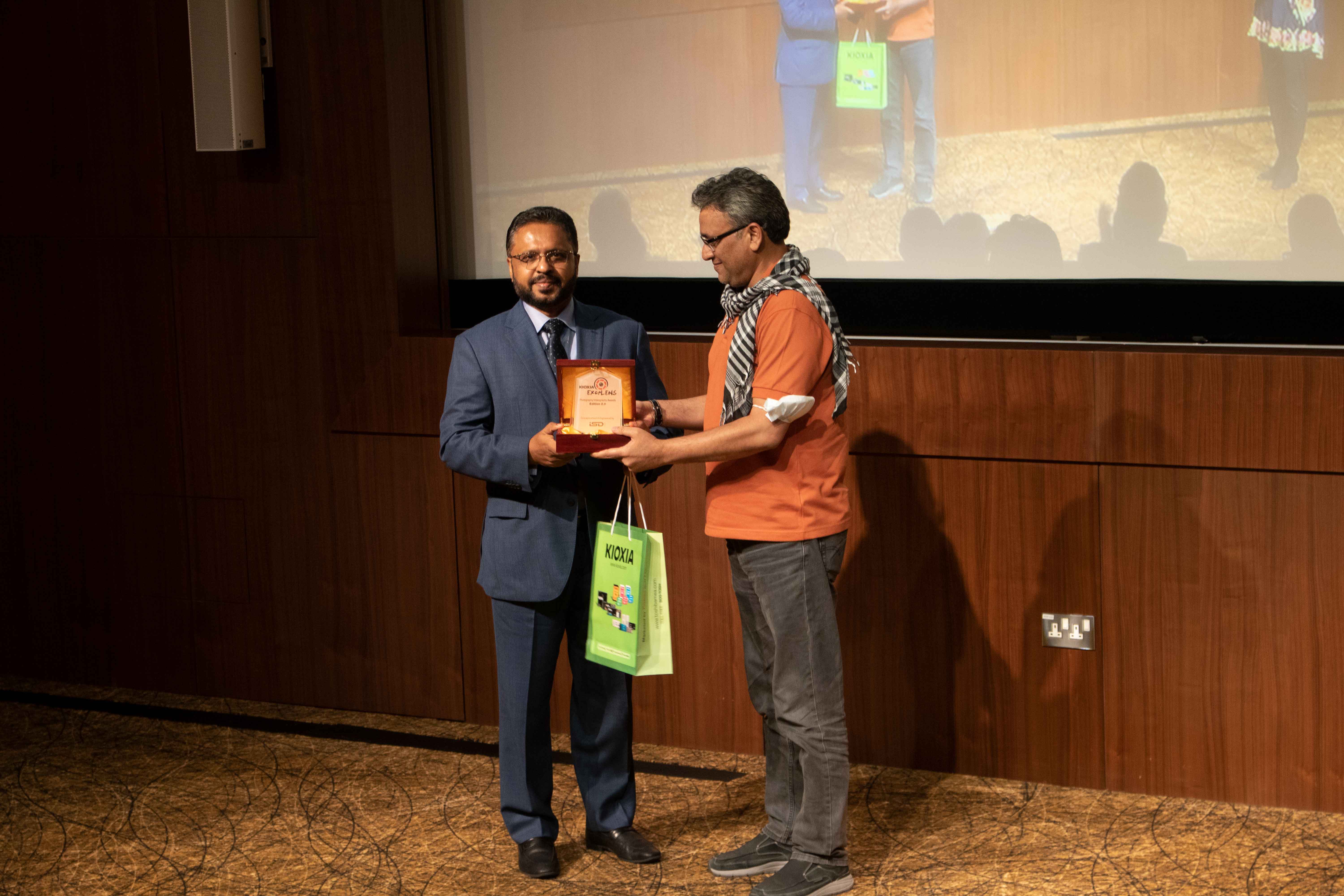 Santosh Varghese, Vice President, Toshiba Gulf FZE presenting the award to Marlon Cardenas in the Travel categorySantosh Varghese, Vice President, Toshiba Gulf FZE presenting the award to Pinu Rahman in the Travel categoryShah Basharat, General Manager MAZDA(Galadari Automobiles) presenting the award to Arjun SasiShaji Shanmugham, Founder & CEO, i-BrandConnect, admiring some of the images displayed Shaji Shanmugham, Founder & CEO, i-BrandConnect, presenting the award virtually to Natasha Mandal, Fine Arts categoryShobhana Chandramohan, the MC of the evening regaled the audience with her timing and sense of reparteeSuaad Al Suwaidi, award winning Emirati wildlife photographer presenting the award to Nishar Mohamed, the winner Tammy Tusek, a veteran leader in American international schools, presenting the award in the Street category to Christopher De Castro Comeso